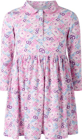 This adorable Floral Check Jersey Dress is perfect for your little girl! Featuring a lovely check floral print in shades of pink and blue, this dress is sure to make her stand out. The peter pan collar, front button placket, and gathered skirt add extra charm to any outing or playdate.