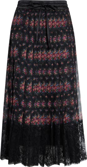 Floral Chiffon A-Line Midi Skirt