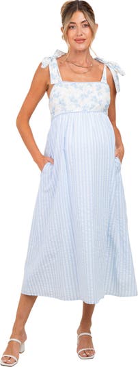 Bloom with style and comfort in our Floral Contrast Stripe Shoulder Tie Maternity Midi Dress! Featuring a charming floral print with chic contrast stripes, this dress is perfect for any occasion. Soft, breathable fabric gently drapes over your growing bump, while adjustable shoulder ties ensure a custom, comfortable fit throughout your pregnancy and beyond. The midi-length skirt flatters every stage, from baby showers to brunch dates. Pair it with sandals for a cute daytime look or dress it up for an evening out—your go-to dress for effortless maternity style!