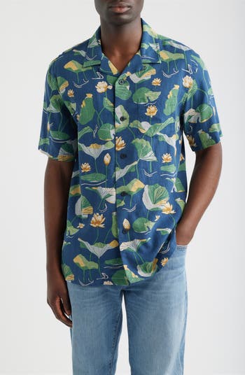 Bright, tropical flowers float against the watery blue of a camp shirt made for enjoying sunny days and casual nights in the comfort of breathable cotton. Wear it on its own or layered and open to change up your look without losing your warm-weather style.