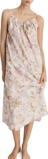 A gathered keyhole neck and dainty floral print sweeten this soft cotton gown finished with a flowy, midi length.
