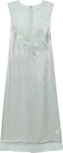 Panels of glossy satin and sheer silk organza conceal and reveal to alluring effect on this lingerie-leaning midi dress from the Belgian designer's 'Quick Change' collection, which celebrates the wardrobe wizardy of magicians' stage performances.