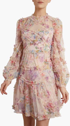 This eye-catching piece is crafted from delicate ruffled tulle with an all-over vintage print taken from an early 1900's hand-painted fabric design. A romantic look featuring voluminous cuffed sleeves and a flattering skirt that skims the body to gently increase in fullness, creating stunning movement within the tulle. This Victorian-inspired look with a contemporary edge will be the star of your wardrobe.