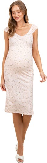 Embrace effortless style with our Floral Ditsy Cap Sleeve Side Slit Maternity Midi Dress! Featuring a flattering midi length, dainty floral print, and sweet cap sleeves, this dress is perfect for every trimester and beyond. A comfortable fitted bodice and stretchy fabric gently hug your bump, while the chic side slit offers easy movement and a touch of flair. Dress up with sandals for brunch or keep it casual for everyday wear—this versatile dress is a must-have for any mama-to-be. Enjoy all-day comfort and confidence with PinkBlush Maternity’s signature style!