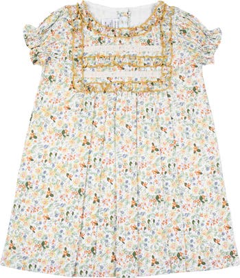 Our yellow floral dress is the perfect outfit to dress for the transitional season. This soft, classic heirloom piece features a beautiful floral print and delicate lace detail. Suitable for any occasion, this short-sleeved dress is perfect for your little one, providing comfortable and stylish all-day wear.