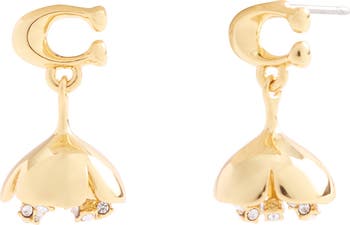 Gilded blooms suspend from sculptural 'C' logos on these dainty drop earrings dusted in sparkling crystals.