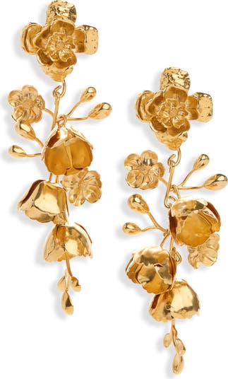 These cascading earrings captivate with golden blooms that playfully swing with every turn of the head.