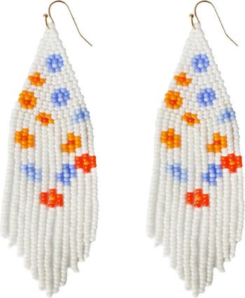 - Details: Handcrafted by artisans in Medellin, ColombiaMaterials: seed beads / stainless steel hardwareSize: Approx 4 inches from top of hook, 2 inches wideSKU: E1092