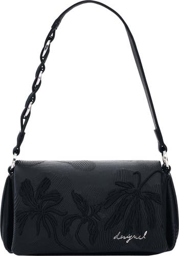 Signature logo hardware and floral embossing bring stunning dimension to a structured crossbody bag shaped from faux-leather and featuring a pair of optional straps for versatile wear.
