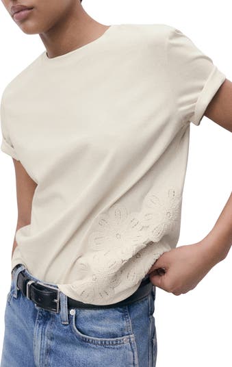 Take your T-shirt collection up a notch with this all-cotton iteration that's prettied up with tonal floral embroidery at the side.