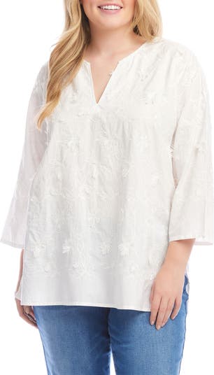 Intricate floral embroidery details this flowy, tunic-length top that's slit at the sides and made of lightweight cotton.