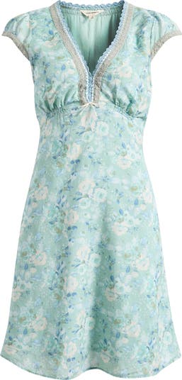 Cue up the country charm in a flowery dress edged in homespun embroidery and cut from a cool cotton-forward blend.