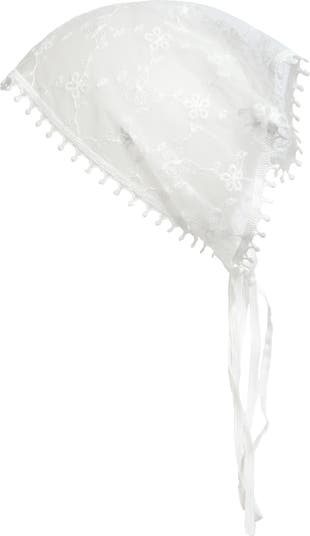 Tie on vintage-inspired charm with this lace headscarf traced in floral embroidery for a romantic finish.