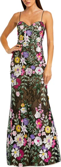 Floral Embroidered Sleeveless Bustier Gown