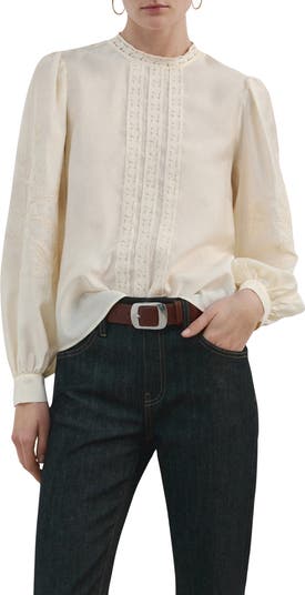 Floral embroidery trims the center and sleeves of this wool-kissed top cut in a heritage-inspired silhouette that's timeless and easy to style.