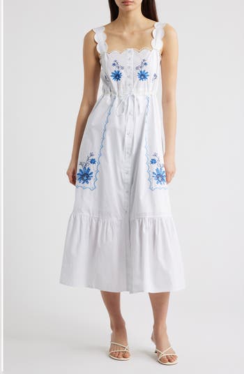 Floral Embroidery Detail Cotton Dress