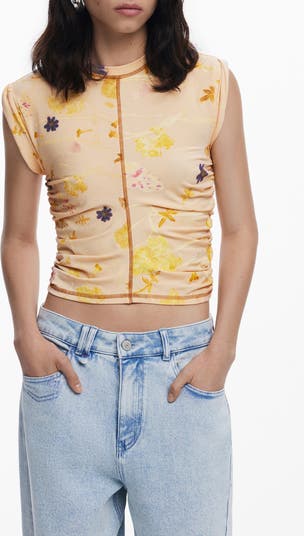 Exposed seams highlight the dreamy floral patterning a sleeveless top that brings an elevated look to your summery wardrobe.