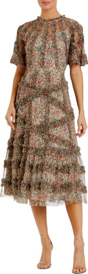 Our Floral Flutter Sleeve Mesh Print Dress features delicate flutter sleeves and a floral print on airy mesh, perfect for brunches or casual outings.