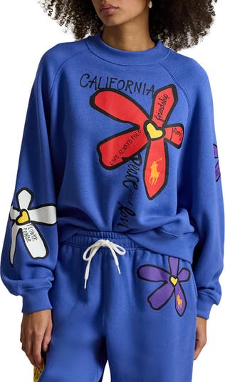 Channel free-spirited charm in this soft fleece crewneck sweatshirt detailed with playful flower graphics inspired by New York, California and Polo heritage. Relaxed through the body with cozy raglan sleeves, it's a feel-good layer that blends comfort, color and nostalgic style.