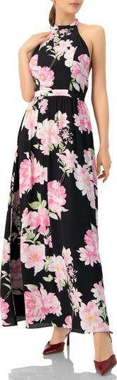 Floral Halter Neck Backless Maxi Dress