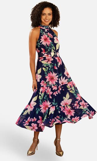 Floral Halter Neck Midi Dress