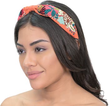 Elevate any look with this floral embroidered headband. Handcrafted, this luxe piece is adorned with intricate threadwork and finished with a neat knotted center. An elegant hair accessory that will add a sophisticated finish to any ensemble.