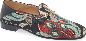 Colorful jacquard and a golden logo bit elevate the minimalist silhouette of this loafer outfitted with an easy convertible heel.