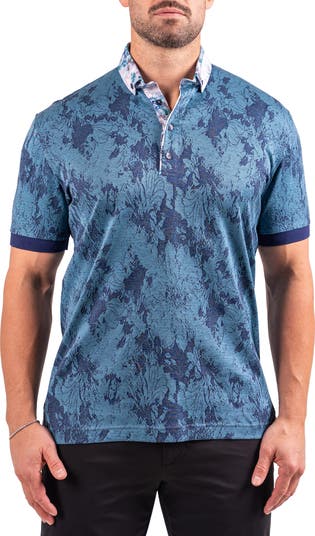 A clematis jacquard piqué crafted from breathable cotton makes a comfortable favorite of a polo designed with a physique-hugging fit. Contrast panels pop at the button-down collar and placket for a signature look.
