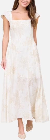 Effortlessly elevate your style with this contemporary-chic floral-jacquard dress featuring cap sleeves and an impeccable A-line silhouette.