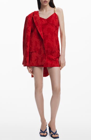 Tonal floral jacquard adds depth and texture to this chic minidress complete with beaded straps.