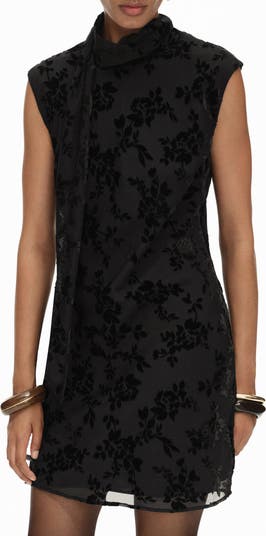 Tonal blooms texture a night-out dress cut to a leg-baring length.