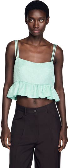 - Sandro Women's ruffled jacquard crop top