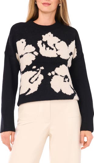 Vince Camuto Floral Jacquard Sweater, Main, color, Rich Black