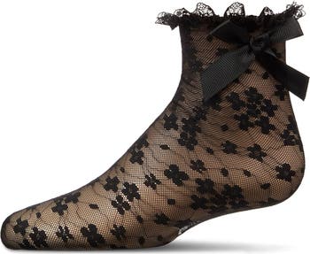 Does she love feminine frills? She'll appreciate these stylish girls' ankle socks, with their beautiful floral lace and dainty ruffled cuffs topped off by a charming bow. The soft, breathable mesh stretches for flexible fit, so she'll always feel as fabulous as she looks. On-Trend Anklet Styling Extra Stretch for Flawless Fit Airy Mesh for Ease and Style Stay-Up Ruffled Tops