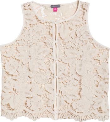 Add a shot of hippie-chic with a lacy vest mostly made from airy cotton.