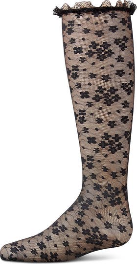 These gorgeous girls knee highs feel as luxe as they look, thanks to their soft nylon mesh and flexible stretch. She'll love the feminine floral pattern and ruffled lace edging. Perfect for special occasions yet durable enough for every day. Airy Lace Mesh for Breathable Comfort Knit-In Stretch for Freedom of Movement Soothingly Soft from Top to Toe Lace-Trimmed Stay-Up Top