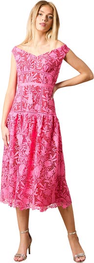 Floral Lace Off The Shoulder Midi Dress