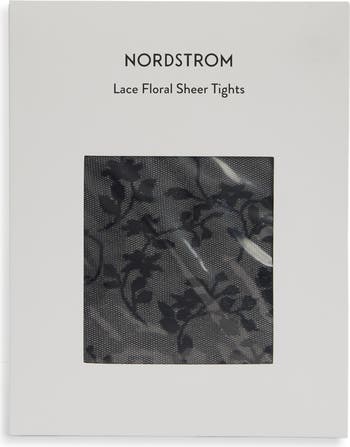 Intricate floral lace brings delicate texture to these sheer tights designed from airy stretch mesh.