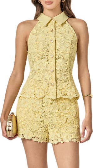 Floral Lace Sleeveless Button-Up Shirt