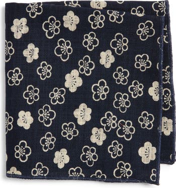 A riot of cheery flowers pattern this linen pocket square that adds a natty flourish to your polished look.