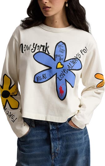Channel free-spirited charm in this long-sleeve T-shirt detailed with playful flower graphics inspired by New York, California and Polo heritage.