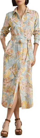 Subtle shades and lovely blooms sweeten a summery shirtdress cut from lightweight linen and perfected with a pair of pockets.