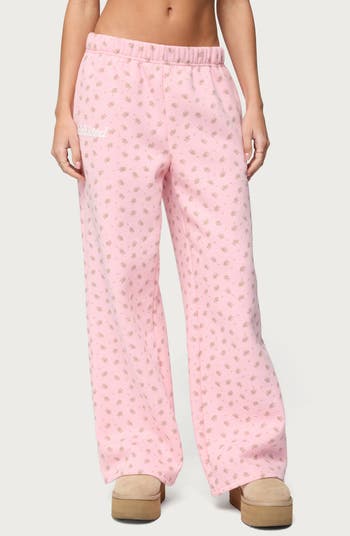 Do anything but blend in when you rock these trendy low-rise sweatpants cut in a straight-leg silhouette and covered in a dainty floral print.