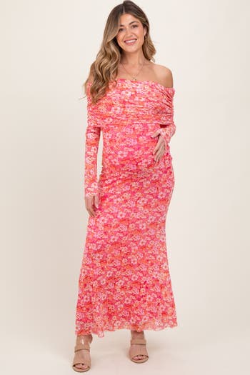 Turn heads at your next event with our Floral Mesh Off Shoulder Long Sleeve Maternity Maxi Dress. This stunning dress features a soft mesh overlay adorned with delicate floral embroidery for a romantic touch. The off-shoulder neckline and airy long sleeves keep you feeling elegant yet comfortable, while the flowy maxi skirt beautifully flatters your bump. With stretchy fabric and a flexible fit, this dress is perfect for baby showers, maternity photos, or any special occasion during pregnancy. Easy to wear and oh-so-chic, you’ll glow with confidence and style every time you slip it on!