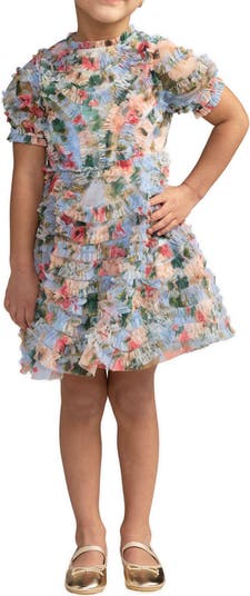 Floral Mesh Ruffle Puff Sleeve Kids Dress