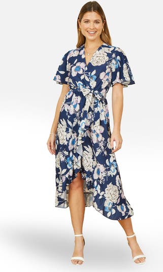 With wedding season fast approaching, we know you're looking for the perfect fit to look and feel amazing at the invites. This wrap style dress boasts a V neckline, tie at the waist and midi length dipped hemline. The all over floral design is pretty and feminine.