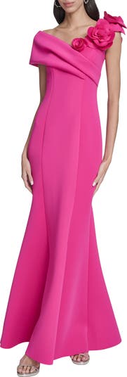 [This review was collected as part of a promotion.] Great dress by Eliza J! Beautiful color magenta pink that would look good on most people in a wonderful scuba diving like fabric that is stretchy enough for multiple body types and thick enough to not be see thru. I love the sweetheart neckline, so flattering with the well made roses on one side and off the shoulder style. The flared hemline also gives you a great shape as well. Can’t wait to wear this out for a formal occasion!