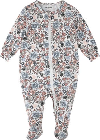 Stretch-added organic cotton and modal keeps baby comfy all night long in floral footie pajamas made with a full-length front zipper that simplifies changing time.