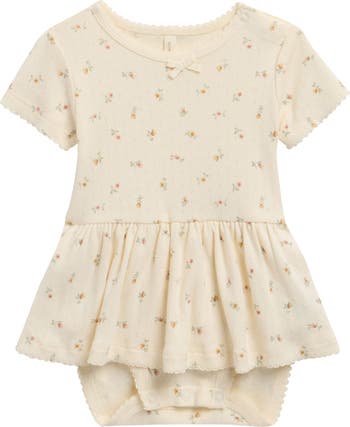 Your babe will be picture-perfect in a flowery romper flounced with a skirt and made from premium organic cotton.