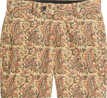 Floral paisleys swirl in reds and greens against the classic khaki background of shorts tailored from crisp cotton with a fit that sits above the hips and hits above the knees in a classic sunny-day length. Style them up or down to add pops of color and fun to your favorite warm-weather looks.